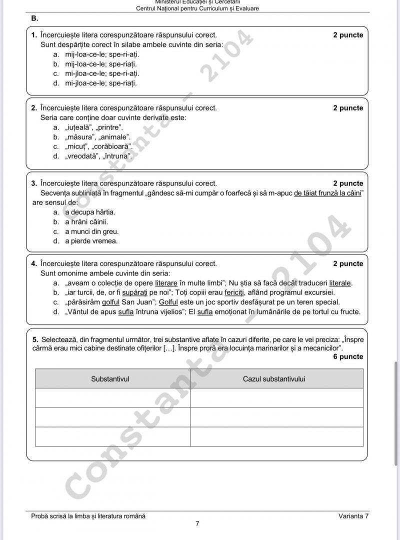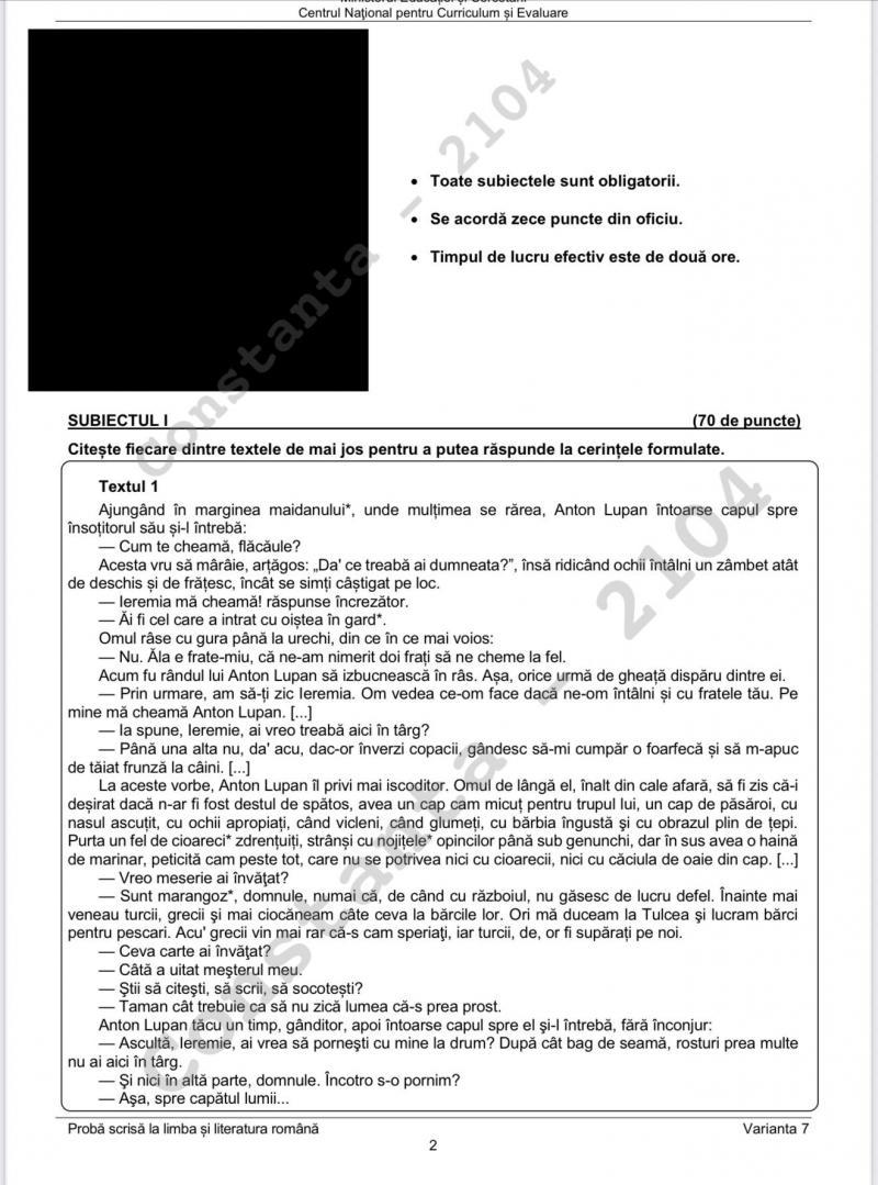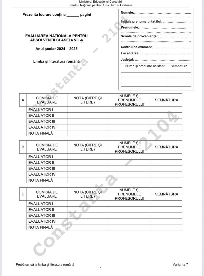 Subiecte Evaluare Naţională 2025 la Limba şi literatura română