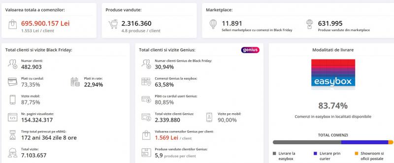 Valoarea medie a coșului de cumpărături a atins 655 RON, de aproape cinci ori mai mare decât într-o zi obișnuită, iar pentru achizițiile în rate, coșul mediu s-a ridicat la aproximativ 1000 RON, cu 55% mai mare față de o zi normală. Printre cele mai căutate categorii de produse se numără IT&C, Home&Deco, Beauty, articole pentru copii și jucării.