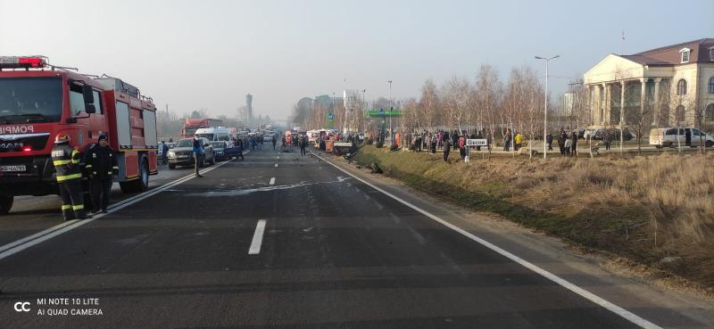 Accident rutier groaznic, în această dimineață, la ieşirea din localitatea Călugăreni către Capitală. Sunt 10 victime, între care o persoană decedată, după ce un autocamion al CNAIR s-a izbit cu un BMW, apoi s-a răsturnat în afara părții carosabile.