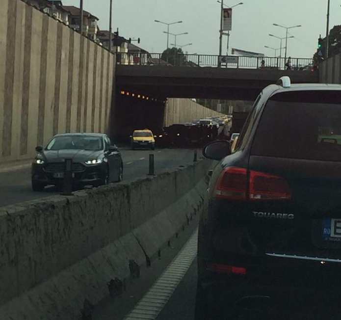 Patru sau cinci mașini s-a ciocnit, pe sensul dinspre fântâna Miorita spre aeroportul Otopeni.