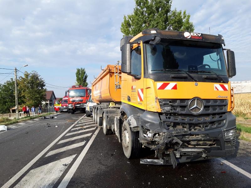 Accident cu cinci victime la Războieni, două mașini făcute praf după impactul cu o basculantă de mare tonaj