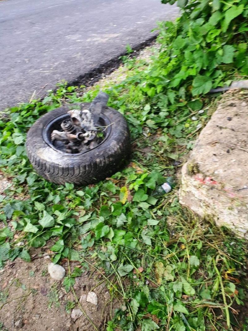 Impactul a fost atât de violent, încât roţile mașinii s-au rupt efectiv.