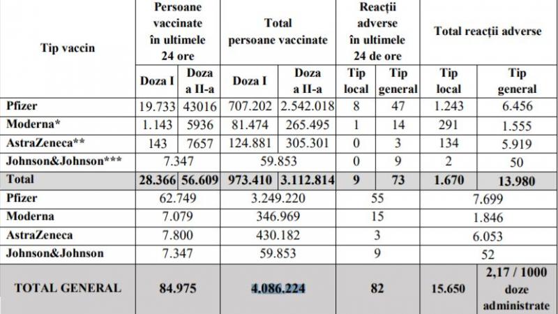 Potrivit datelor puse la dispoziția Comitetului Național de Coordonare a Activităților privind Vaccinarea împotriva COVID-19 (CNCAV) de către Institutul Național de Sănătate Publică (INSP-CNSCBT), prin aplicația Registrul Electronic Național al Vaccinărilor (RENV), care ține evidența vaccinărilor, situația din ziua de 21 mai a.c., ora 17.00, este următoarea: