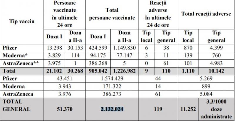 - 2.132.024 de persoane au fost vaccinate în România, de la debutul campaniei de vaccinare și până în prezent.