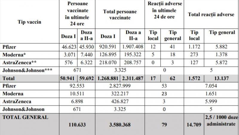 1. Numărul de doze administrate împotriva COVID-19 cu vaccinul Pfizer BioNTech (în ultimele 24 de ore): 92.553, din care: 46.623 de persoane vaccinate cu 1 doză; 45.930 de persoane vaccinate cu 2 doze.