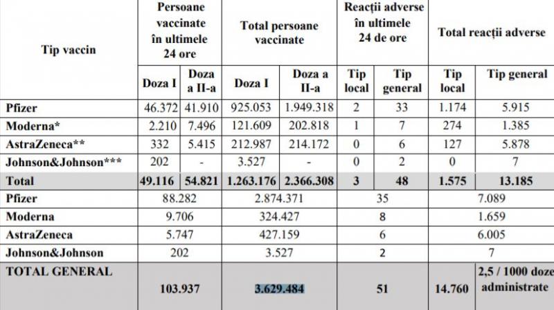 Potrivit datelor puse la dispoziția Comitetului Național de Coordonare a Activităților privind Vaccinarea împotriva COVID-19 (CNCAV) de către Institutul Național de Sănătate Publică (INSPCNSCBT), prin aplicația Registrul Electronic Național al Vaccinărilor (RENV), care ține evidența vaccinărilor, situația din ziua de 9 mai a.c., ora 17.00, este următoarea: