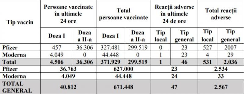 Potrivit datelor puse la dispoziția CNCAV de către Institutul Național de Sănătate Publică, prin aplicația Registrul Electronic Național al Vaccinărilor (RENV), care ține evidența vaccinărilor, situația din ziua de 10 februarie a.c., ora 17.00, este următoarea: