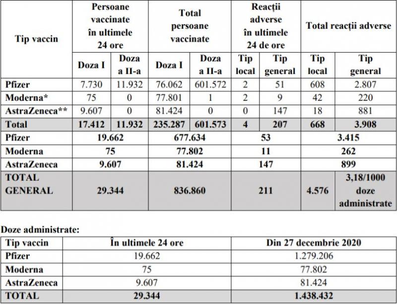 Potrivit datelor puse la dispoziția CNCAV de către Institutul Național de Sănătate Publică, prin aplicația Registrul Electronic Național al Vaccinărilor (RENV), care ține evidența vaccinărilor, situația din ziua de 23 februarie a.c., ora 17.00, este următoarea: