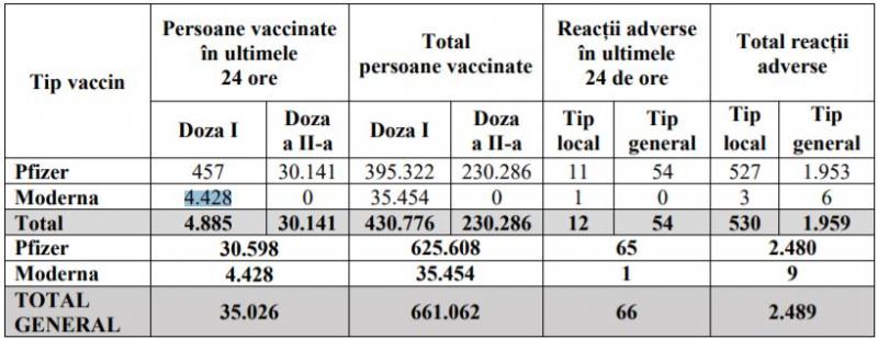 Potrivit datelor puse la dispoziția CNCAV de către Institutul Național de Sănătate Publică, prin aplicația Registrul Electronic Național al Vaccinărilor (RENV), care ține evidența vaccinărilor, situația din ziua de 8 februarie a.c., ora 17.00, este următoarea: