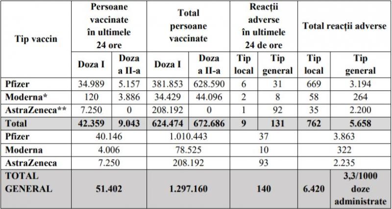 Potrivit datelor puse la dispoziția CNCAV de către Institutul Național de Sănătate Publică, prin aplicația Registrul Electronic Național al Vaccinărilor (RENV), care ține evidența vaccinărilor, situația din ziua de 9 martie a.c., ora 17.00, este următoarea:
