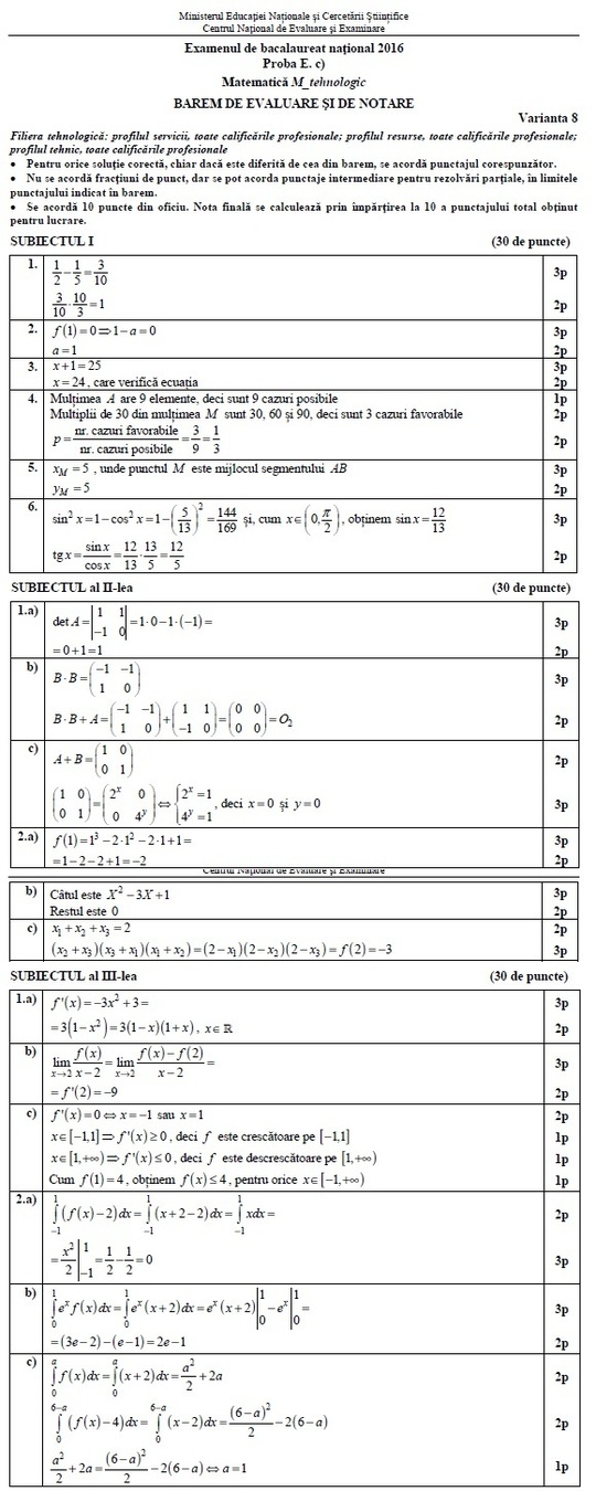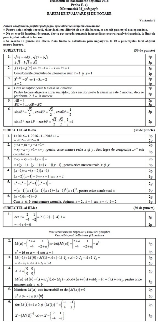 REZULTATE BACALAUREAT 2016. Ministerul Educaţiei a publicat pe site-ul edu.ro baremele de corectare a testelor date la proba obligatorie a profilului, la disciplinele istorie şi matematică.