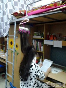 Când au mult de învăţat îşi leagă părul de tavan. Două studente de la Universitatea de Agronomie şi Silvicultură Fujian, China, sunt cele care au descoperit idedita metodă.