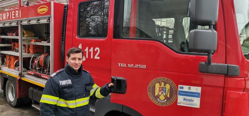 Fără să stea pe gânduri, plt. maj. Șatran Mihai Cătălin, șef gardă de intervenție și stingere, a sărit imediat în ajutorul celor două persoane.