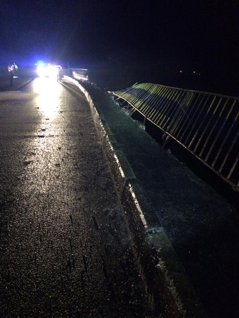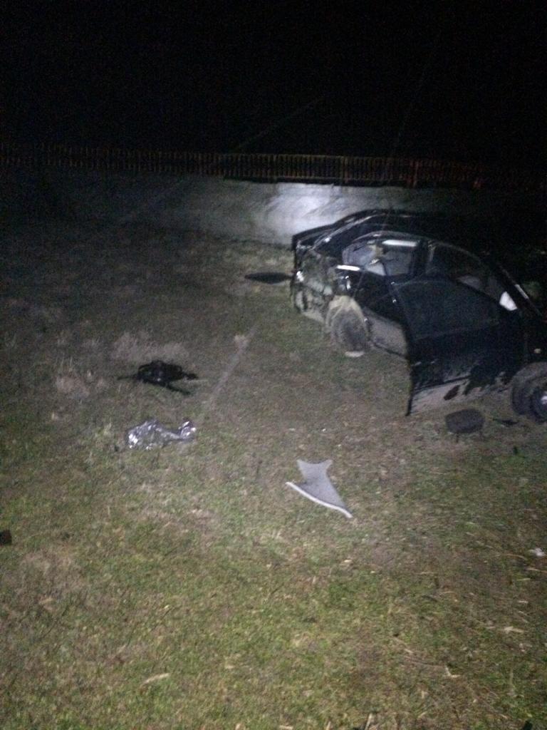 Galerie foto Cinci tineri au zburat cu maşina de pe un pod, în Olt. Doi băieţi au fost găsiţi încarceraţi pe bancheta din spate