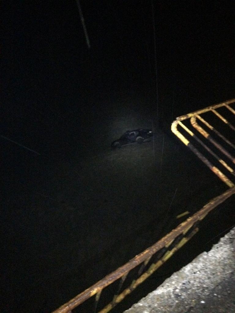 Un autoturism a fost găsit pe terenul aflat în zona adiacentă podului peste calea ferată, care ar fi căzut de la o înălțime de aproximativ 8 metri.