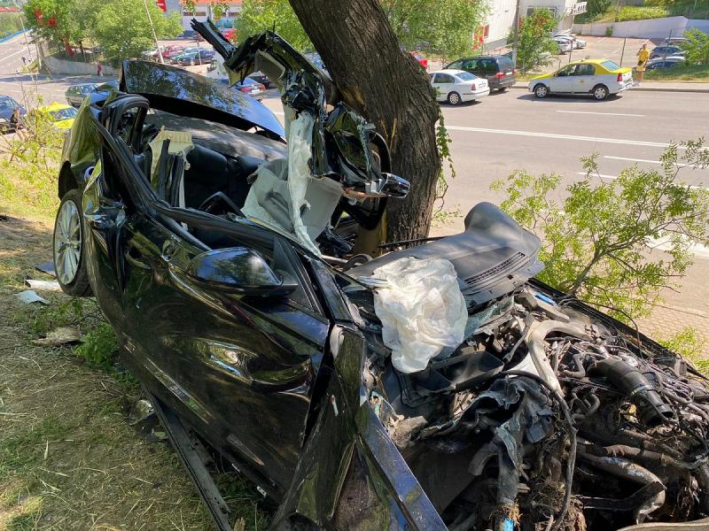 Potrivit poliţiştilor constănţeni, accidentul s-a produs din cauza vitezei excesive. Şoferul maşinii conducea dinspre podul rutier către strada Lupeni când, din cauza vitezei, a pierdut controlul volanului şi s-a izbit de mai mulţi copaci aflaţi pe marginea drumului. Bolidul s-a oprit într-un pom, iar impactul a fost atât de puternic, încât maşina s-a încolăcit efectiv în jurul trunchiului. Imaginile suprinse la faţa locului arată dimensiunea dezastrului.