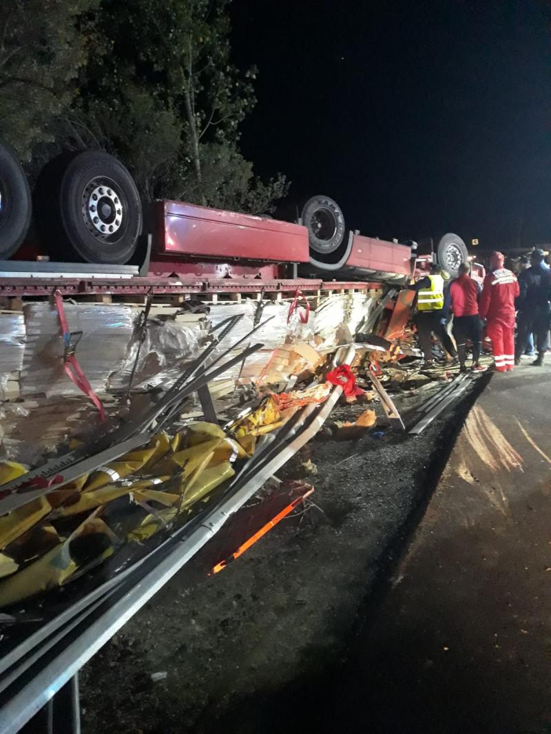 Între localitățile Coroieni și Drăghia, într-o curbă deosebit de periculoasă, semnalizată prin indicatoare, conducătorul unui TIR, un bărbat de 42 de ani din Rohia, nu a adaptat viteza la condițiile de drum, a părăsit partea carosabilă și s-a răsturnat.