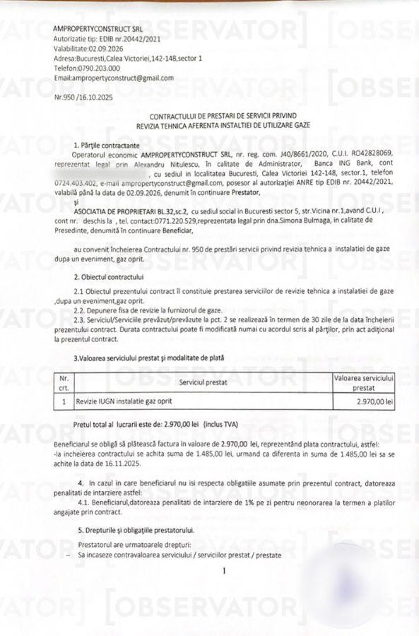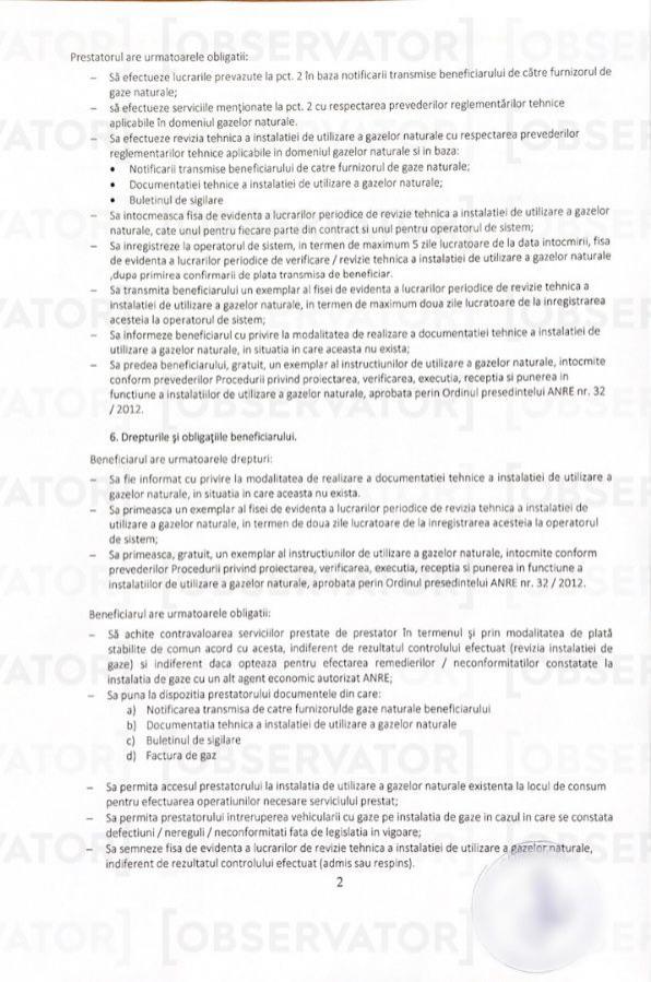 În contract, scrie clar că acesta a fost semnat pentru "prestarea serviciilor de revizie tehnică a instalației de gaze după un eveniment gaz oprit". Tot acolo este stipulat şi termenul de intervenţie - 30 de zile de la data semnării contractului. La audierile de ieri, administratoarea a declarat că angajaţii firmei au intervenit.