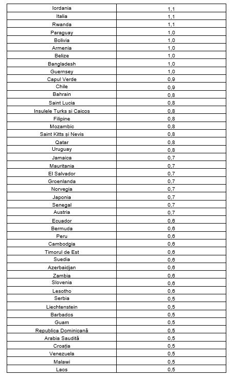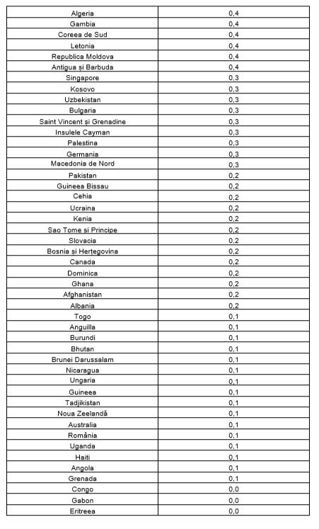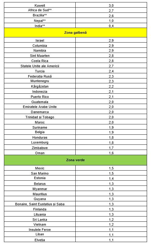 • din zona verde, în urma creșterii incidenței: Turcia, Muntenegru, Puerto Rico, Maroc și Oman;