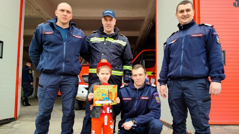 Video Gabriel, un mic pompier din Iași, și-a întâlnit adevăraţii eroi în ziua în care a împlinit cinci anișori