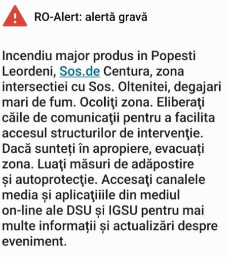 Mesaj RO-Alert după producerea incendiului