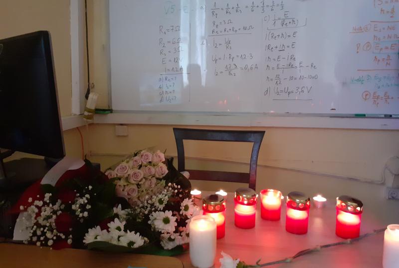 În liceu, colegii şi elevii au aşezat flori şi au aprins lumânări pentru profesoara care s-a stins la doar 55 de ani.