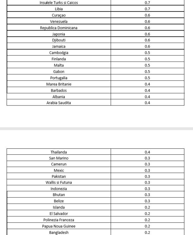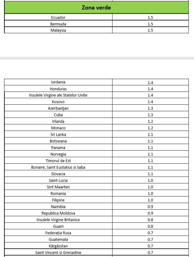 Lista țărilor/ zonelor/ teritoriilor cu risc epidemiologic ridicat, conform Hotărârii nr. 28 din 14.05.2021 a Comitetului Național pentru Situații de Urgență