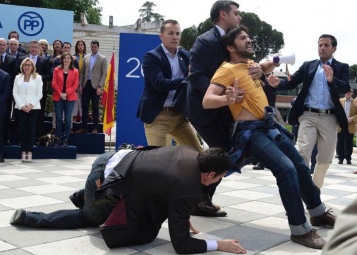 Un incident care a făcut valuri în presa din Spania a avut loc în luna mai a acestui an, la un eveniment al Partidului Popular, şi i-a avut ca protagonişti pe românul Lagarder Danciu, un activist pentru drepturile omului, şi pe premierul spaniol Mariano Rajoy, care este şi liderul formaţiunii.