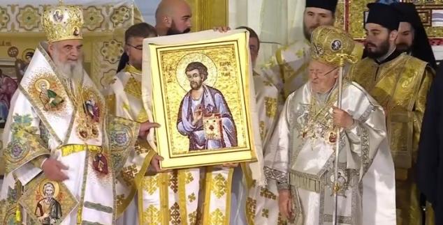 Prefericitul Daniel i-a făcut un cadou Patriarhului Ecumenic Bartolomeu I: Icoana Sf. Apostol Bartolomeu, în mozaic bizantin