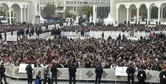 Imagini spectaculoase din prima parte a zilei de 26 octombrie, cu strângerea enoriașilor în jurul Catedralei Naționale.