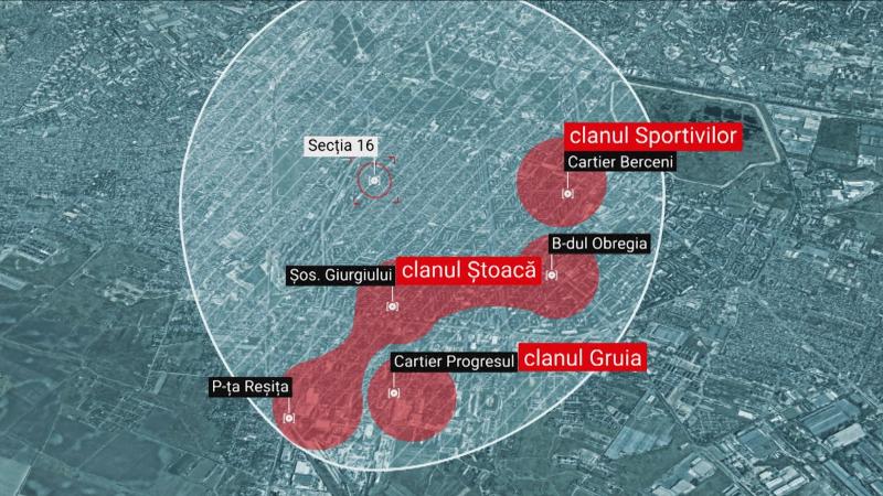 Clanul Ştoacă, înfrăţit cu Sportivii, acoperă Şoseaua Giurgiului, Bulevardul Obregia şi Piaţa Reşiţa. Piaţa este unul din cele mai importante puncte pe harta contrabandei cu ţigări. Clanul Gruia, implicat în traficul de droguri, controlează cartierul Progresul.