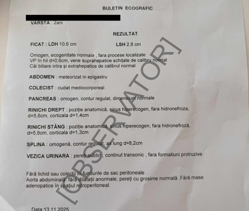 Tragedia de la clinica stomatologică ridică numeroase semne de întrebare la care anchetatorii şi Inspecţia Sanitară vor trebui să răspundă pentru a afla de ce o fetiţă de doar doi ani a murit în timpul unei invervenţii caracterizate de medici ca fiind "de rutină". Micuţa a fost supusă unei proceduri de anestezie şi a intrat în stop cardio respirator. Părinţii, devastaţi, spun că fetiţa mai trecuse şi în urmă cu un an printr-o astfel de intervenţie, doar că atunci analizele făcute înaintea procedurii fuseseră în regulă. Acum, unele analize efectuate înainte ca ea să meargă la dentist nu ieşiseră bine. Observator a obţinut buletinul de analize al fetiţei de doi ani.