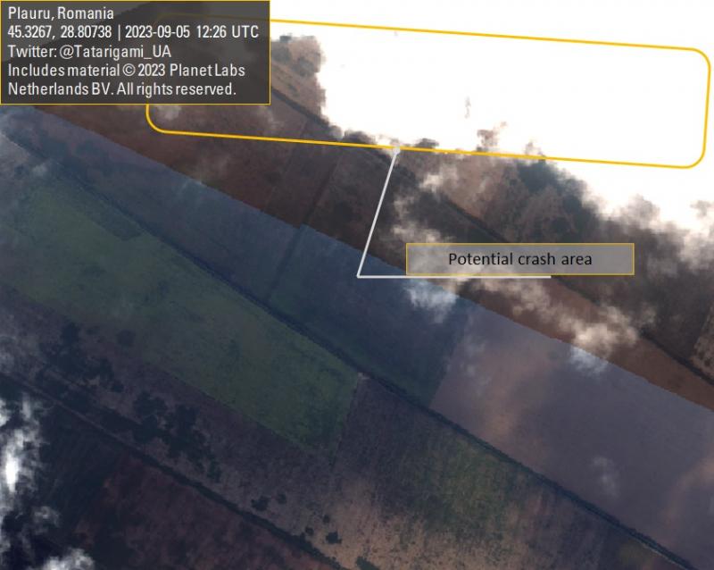 Coordonatele au fost stabilite de echipa Geoconfirmed, care are un grad ridicat de încredere, pe baza unei cercetări amănunțite. Sunt foarte sigur că incidentul a avut loc pe teritoriul României... Explozia a avut loc cel mai probabil în apropierea unor copaci şi nu în câmp deschis. Prin urmare ar putea fi nevoie să mai așteptăm câteva zile pentru ca imagini mai clare să fie disponibile înainte de a-mi putea confirma ipoteza", a scris Tatarigami.