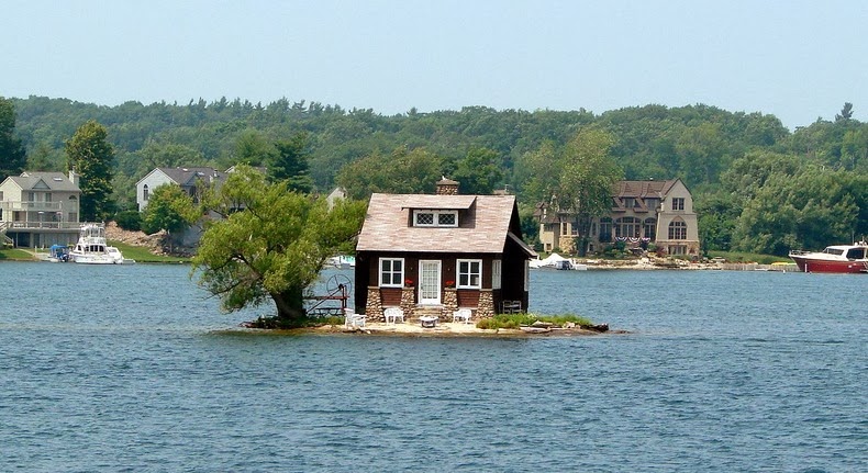 Chiar la graniţa dintre SUA şi Canada există o mulţime de insule şi insuliţe care oferă peisaje unice în lume. Unele dintre insule sunt atât de mici, încât pe ele se poate construi doar o casă!