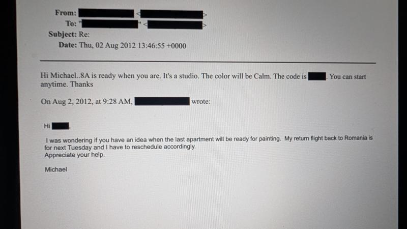 Un alt zugrav, care se recomandă "Michael" în mail-uri, întreabă când poate începe o lucrare, ca să știe cum își programează zborul înapoi în România.