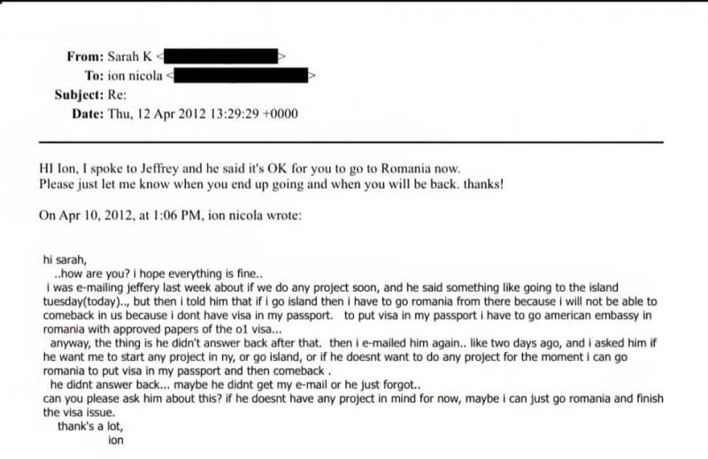 Ion Nicola este un pictor pe care Epstein îl contractase să lucreze inclusiv pe notoria insulă. Într-unul dintre mail-uri, Nicola se plânge că nu a primit banii pentru o lucrare și speră că își va recupera suma restantă chiar de la colaboratorii milionarului.
