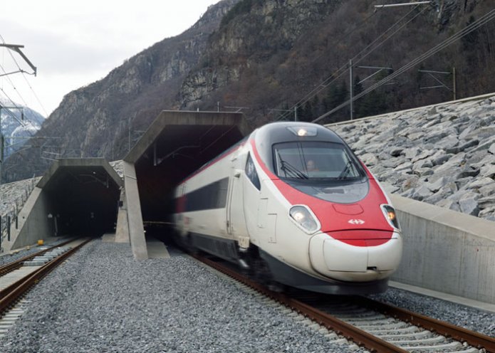 Lucrătorii au excavat 31 de milioane de tone de rocă din munte, din care 60% a fost reciclată în cadrul lucrărilor de amenajare a tunelului feroviar cu lungimea de 56 de kilometri. În prezent, pasagerii pot ajunge de la Zurich la Milano în doar trei ore și jumătate (cu mai mult de jumătate de oră mai repede decât anterior).
