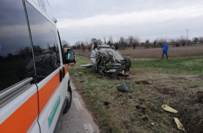 Două autoturisme - o Lancia Y și un Ford Escort - s-au ciocnit frontal, ambele maşini fiind aruncate în afara carosabilului, după impact.