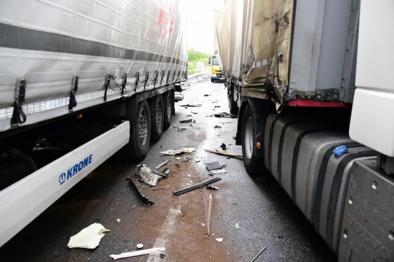 Galerie foto Doi șoferi români de TIR și-au făcut camioanele praf, pe un drum din Franța. Unul transporta sticle, celălalt fier vechi