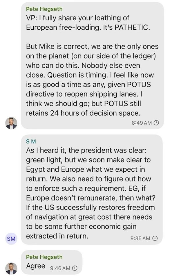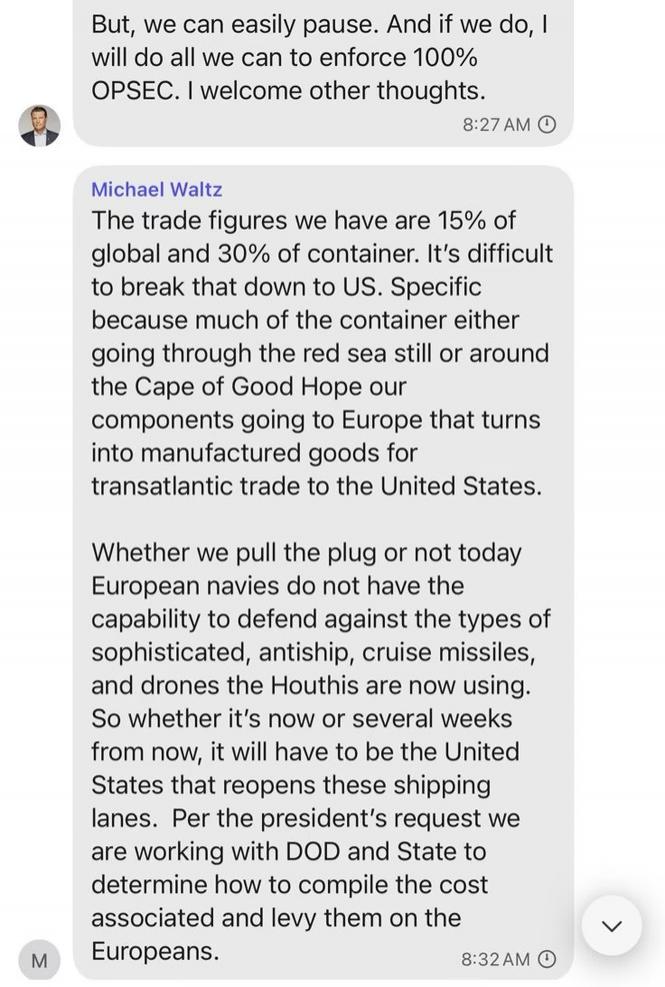 "Declarațiile lui Hegseth, Gabbard, Ratcliffe și Trump, combinate cu afirmațiile făcute de numeroși oficiali ai administrației că mințim în legătură cu textele de pe Signal, ne-au determinat să credem că oamenii ar trebui să vadă conținutul acestora și să tragă propriile concluzii. Există un interes public clar în dezvăluirea tipului de informații pe care consilierii lui Trump le-au transmis prin canale nesecurizate, mai ales în condițiile în care lideri ai administrației încearcă să minimalizeze importanța mesajelor distribuite", a scris Jeffrey Goldberg, editor The Atlantic
