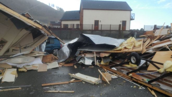 Directorul campingului Clarach Bay Holiday Village, din apropiere de Aberystwyth, Thomas Scarrott, a declarat că între 15 şi 20 de rulote au fost răsturnate. „A fost o experienţă îngrozitoare, (tornada – n.r.) a apărut de nicăieri. Trebuie să fi fost o tornadă, deoarece campingul de vis-a-vis nu pare să aibă nicio problemă. Din fericire, era închisă, aşa că erau numai câţiva muncitori şi angajaţi din serviciile de mentenanţă, pentru că altfel cred că ar fi fost mult mai mulţi răniţi”, a spus el.
