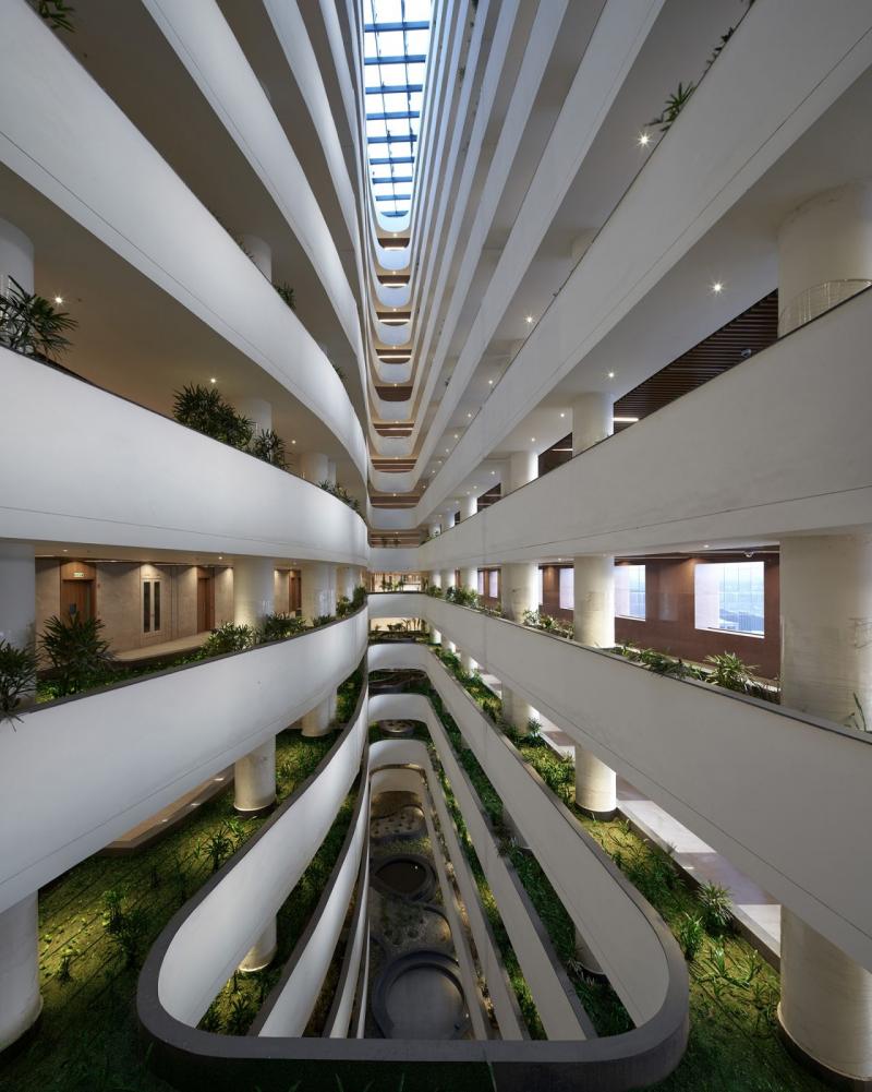 Morphogenesis susţine că designul său consumă cu 50% mai puţină energie decât valoarea maximă permisă pentru a obţine calificativul "platină" din partea Consiliului indian pentru construcţii ecologice. Arhitecţii spun că forma evazată a coloanei vertebrale centrale a fost concepută pentru a canaliza curentul predominant prin structură, în timp ce "răcirea radiantă" face să circule apă rece sub podele pentru a reduce temperaturile interioare.