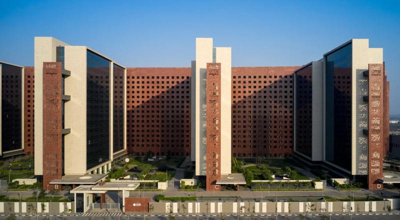 Complexul, care a costat 32 de miliarde de rupii (388 de milioane de dolari) găzduieşte, de asemenea, 131 de lifturi, precum şi facilităţi de luat masa, de vânzare cu amănuntul, de wellness şi de conferinţe pentru lucrătorii din dommeniu.