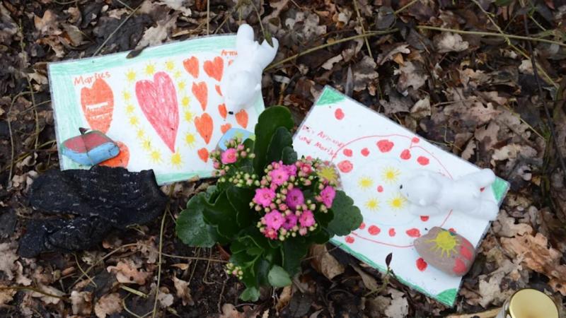 - Pe malul lacului Laher, colegii celor doi frăţiori au aşezat lumânări şi desene.