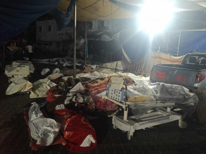 Ashraf Al-Qidra, purtătorul de cuvânt al Ministerului Sănătății din Gaza, aflat în interiorul spitalului, a spus marţi contactat prin telefon de Reuters că înăuntru se descompun aproximativ 100 de cadavre și că nu există nicio modalitate de a le scoate..