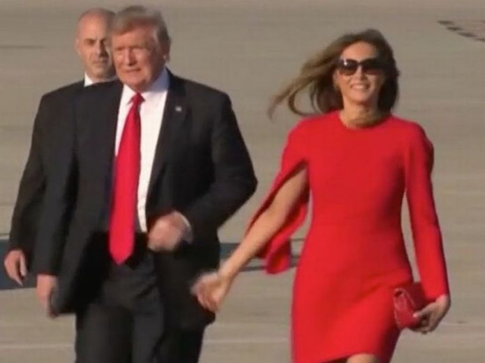 Melania l-a însoţit pe soţul ei cu ocazia unei călătorii la Palm Beach, iar imediat după aterizare, aceasta l-a luat de mână pentru a se îndrepta spre mulţimea care îi aplauda.