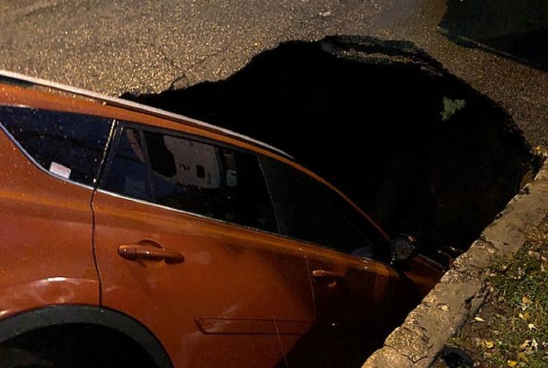 Foto O maşină a fost înghiţită de o groapă apărută din senin în asfalt, pe o stradă din SUA
