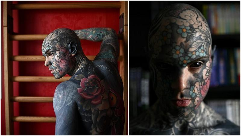 Ochii lui sunt vopsiți, limba lui este neagră, iar spatele e plin de ace. Profesorul considerat a fi cel mai tatuat om din Franța a spus că modificările corpului din cap până în picioare l-au costat slujba într-o grădiniță pariziană după ce un părinte i-a făcut plângere.