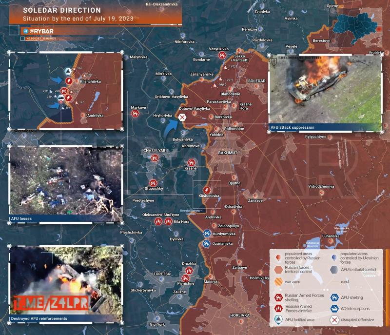 Institutul pentru Studiul Războiului, un grup de experţi în apărare cu sediul în SUA, confirmă în actualizarea zilnică a situaţiei de pe front că forțele ucrainene au continuat operațiunile de contraofensivă pe cel puțin trei sectoare ale frontului și au avansat pe 20 iulie. Andriy Biletskyi, fondatorul Regimentului Azov, a anunţat pe Telegram, pe 19 iulie, că forțele ucrainene au avansat cu 1,8 km pe flancul sudic de la Bahmut. Bloggerii militari ruși confirmă şi ei că forțele ucrainene au avansat şi pe flancul de nord de la Bahmut, dar nu vorbesc de o semi-încercuire.