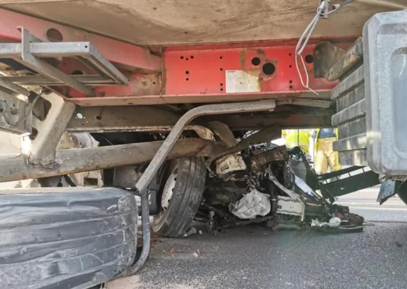 Practic, în urma impactului teribil, duba românului a intrat sub șasiul camionului. VIDEO, aici